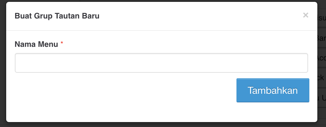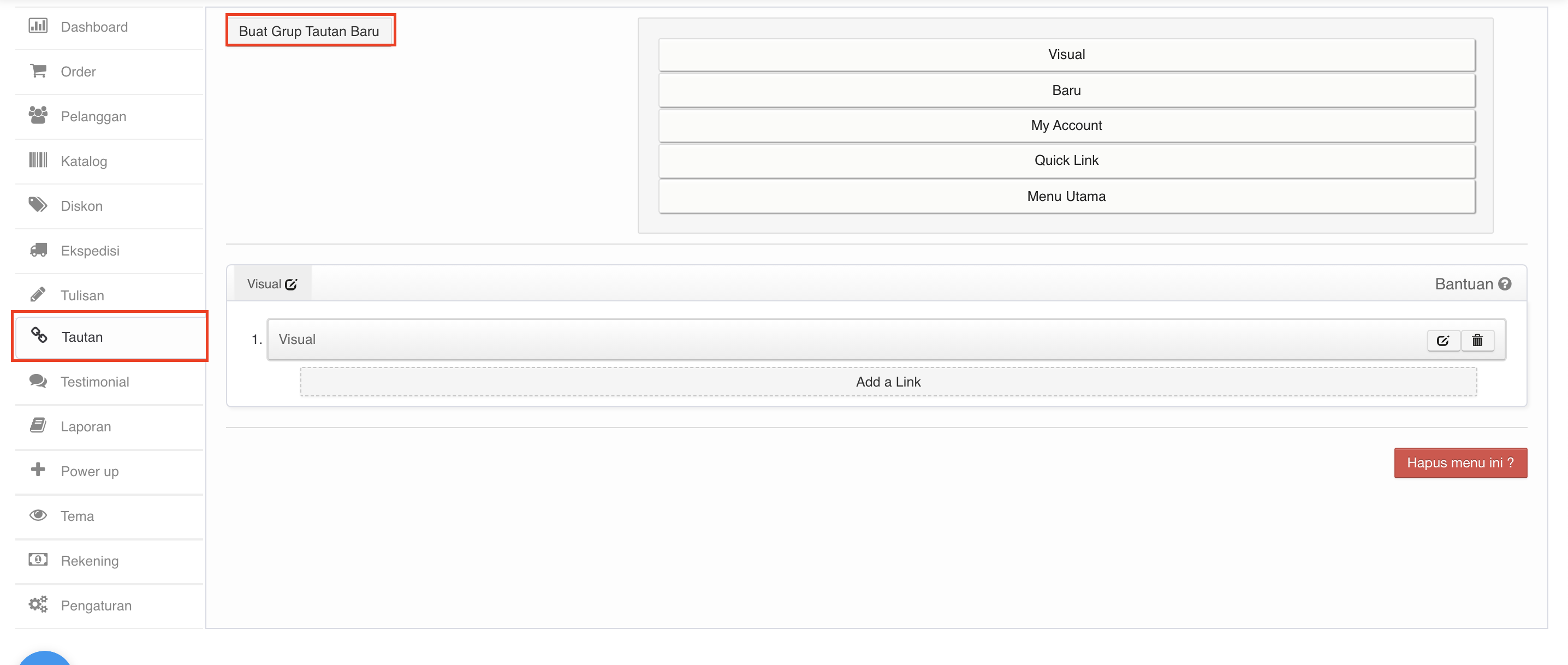 Pilih menu Tautan lalu tekan tombol tambah group yang terdapat disebelah kanan atas tombol list tautan